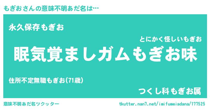| 欧米人風あだ名 | 『ダニエルもぎお』『ダルビッシュもぎお』 |
