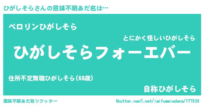 | 胡散臭い通販商品みたいなあだ名 | 『世界が平和になる高級そうな絵画…その名も「ひがしそら」』 |