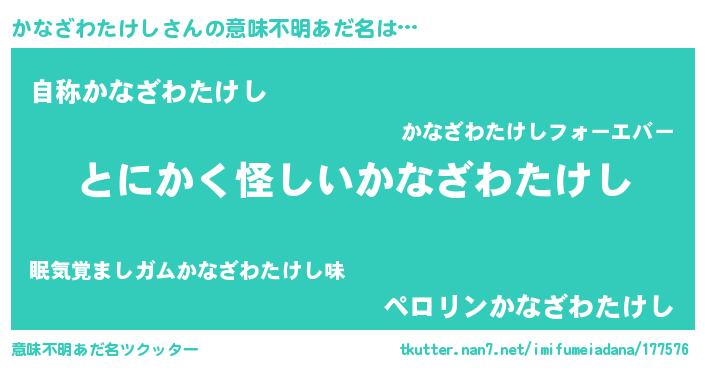 | 胡散臭い通販商品みたいなあだ名 | 『信頼と実績のサプリメント…その名も「かなざわたけし」』 |