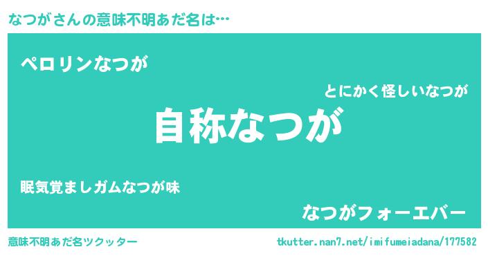 | 男性向けラノベタイトル風あだ名 | 『Re:なつがから始める異世界生活』 |