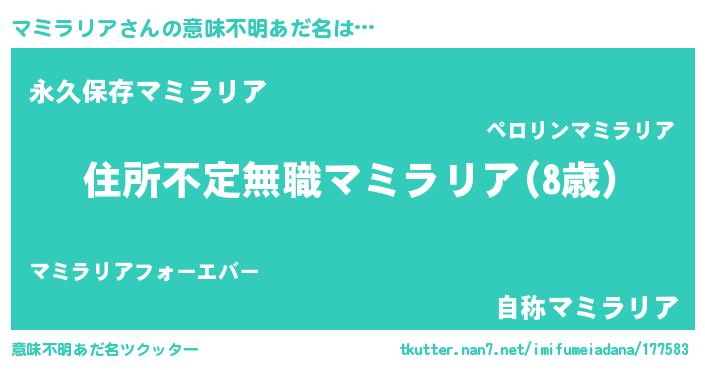 | ヘコむあだ名 | 『マミラリア(笑)』『マミもー』 |
