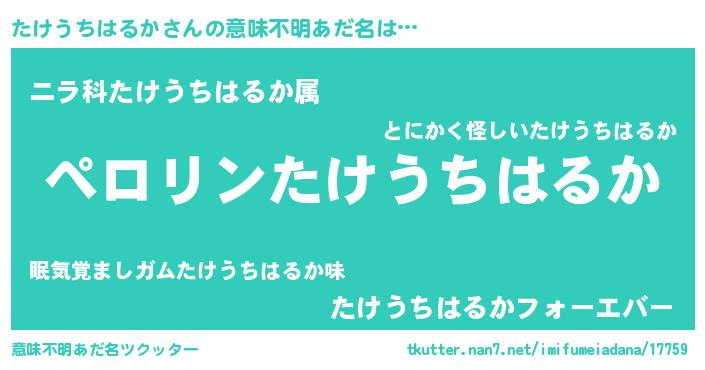 | 男性向けラノベタイトル風あだ名 | 『たけうちはるかの憂鬱』 |