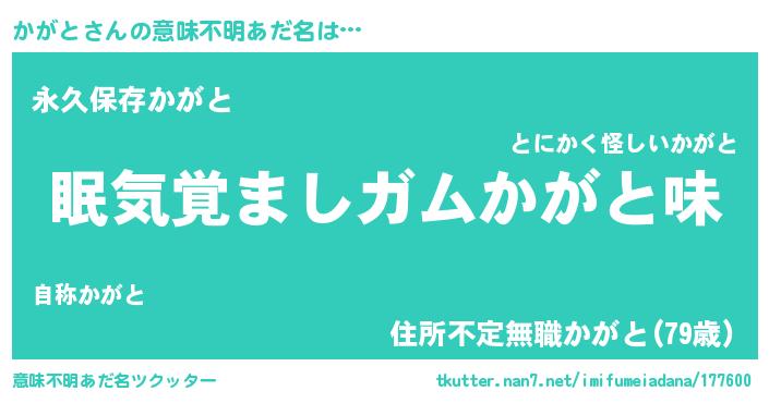 | 欧米人風あだ名 | 『かがと・ステッグマイヤー』 |
