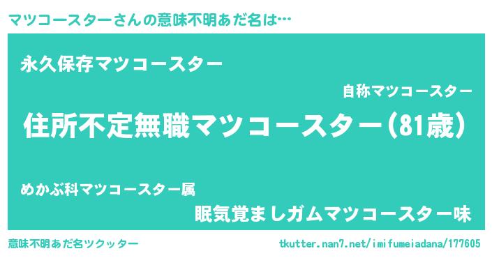 | ヒーロー風カッコイイあだ名 | 『仮面マツダー』『ネオマツコースター』 |