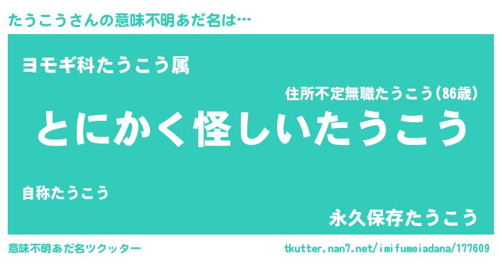 | ポケモン風あだ名 | 『ヒタウコウ』『タウゴンZ』 |