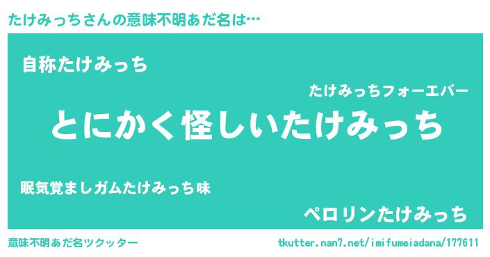 | ヘコむあだ名 | 『たけっちょ』『たけっふぃ~』 |