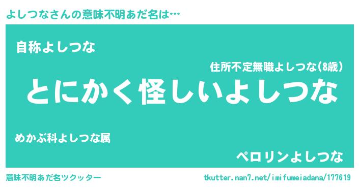| 女子向けラノベタイトル風あだ名 | 『よしつなは平凡を望む』『闇のよしつな』 |