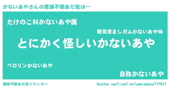 | 女子向けラノベタイトル風あだ名 | 『かないあやの卵を拾いまして』 |
