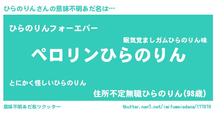 | 胡散臭い通販商品みたいなあだ名 | 『必ず成功するブレスレット…その名も「ひらのりん」』 |