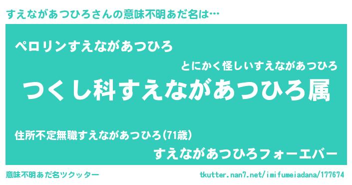 | 胡散臭い通販商品みたいなあだ名 | 『億万長者になれるブレスレット…その名も「すえながあつひろ」』 |