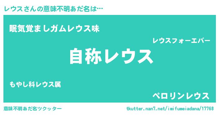 | ヒーロー風カッコイイあだ名 | 『最強戦士レウス』『愛の使者レウス』 |