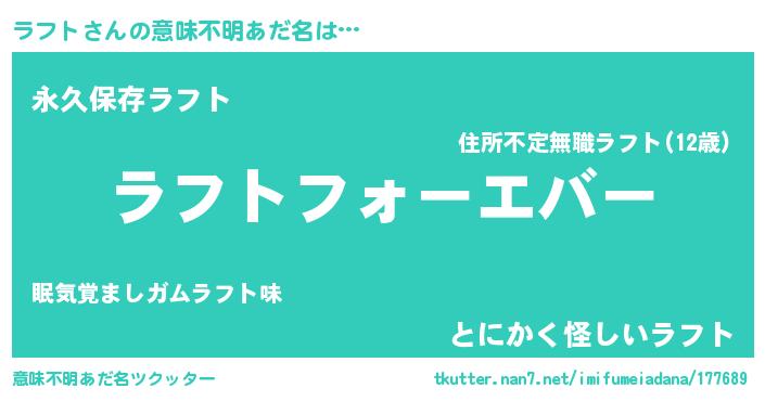 | ファンタジー風あだ名 | 『エターナルラフトー』『ラフディッシュ』 |