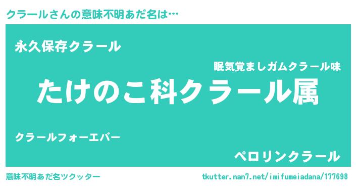 | ヘコむあだ名 | 『クラール(笑)』『クラにー』『豆乳』 |