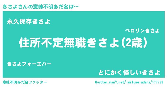 | 男性向けラノベタイトル風あだ名 | 『この素晴らしい世界にきさよを!』 |
