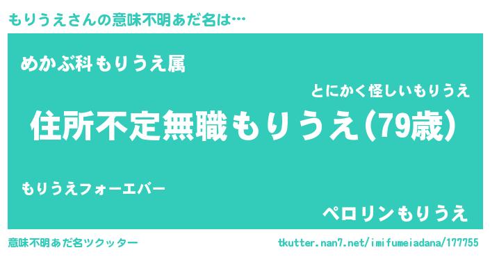 | 欧米人風あだ名 | 『もりうえ・ステッグマイヤー』 |