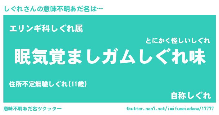 | 欧米人風あだ名 | 『ダニエルしぐれ』『トリンドルしぐれ』 |
