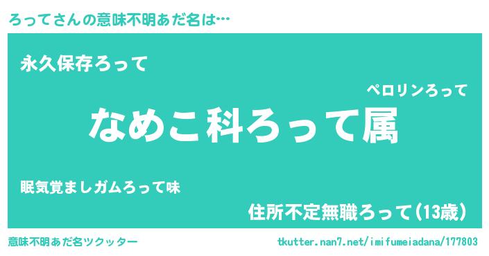 | 男性向けラノベタイトル風あだ名 | 『転生したらろってだった件』 |