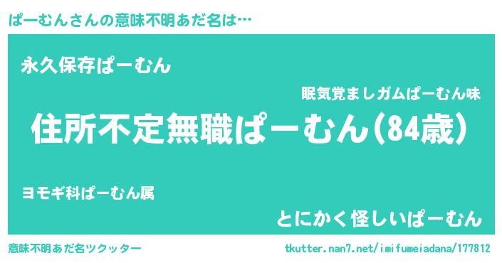 | 男性向けラノベタイトル風あだ名 | 『魔弾の王とぱーむん』 |