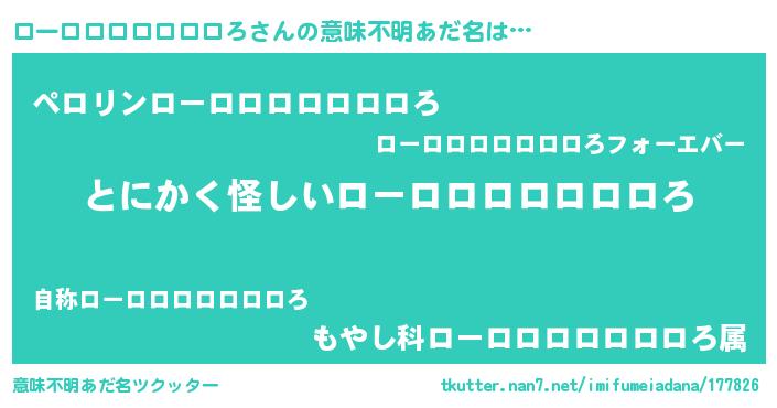 | 胡散臭い通販商品みたいなあだ名 | 『信頼と実績のサプリメント…その名も「ローロロロロロロロろ」』 |