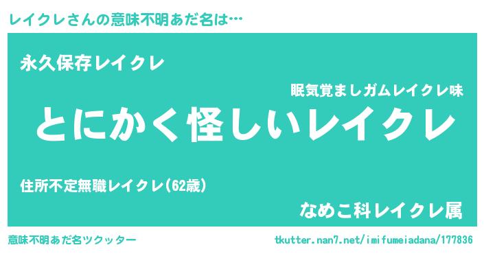 | ヘコむあだ名 | 『レイを』『レイクレ(遠い目)』 |