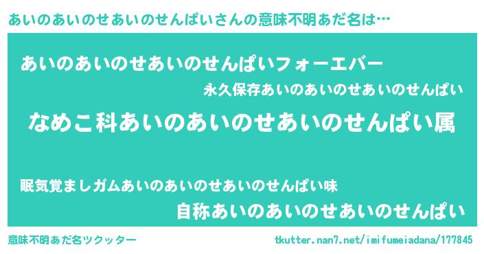 | 欧米人風あだ名 | 『トリンドルあいのあいのせあいのせんぱい』 |