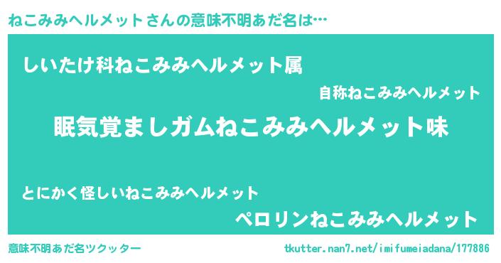 | 伝説のあだ名 | 『救世主となる占い師ねこみみヘルメット』 |