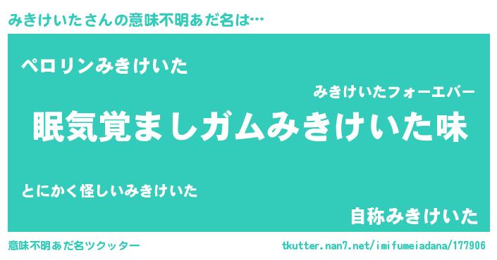 | 欧米人風あだ名 | 『アンジェラ・みきけいた』 |