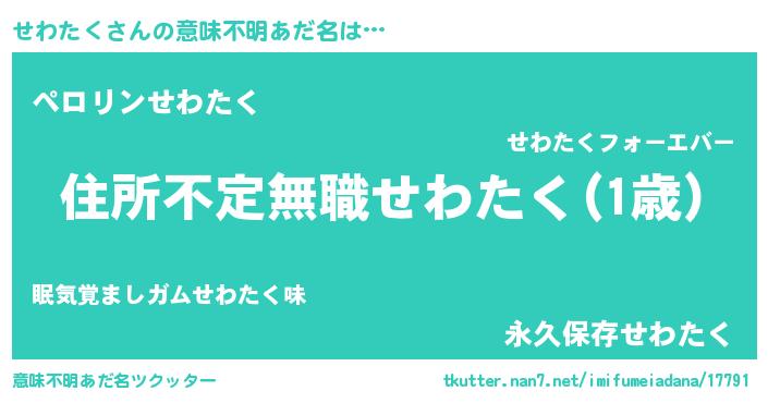 | 胡散臭い通販商品みたいなあだ名 | 『世界中を虜にした100年もののヴィンテージワイン…その名も「せわたく」』 |