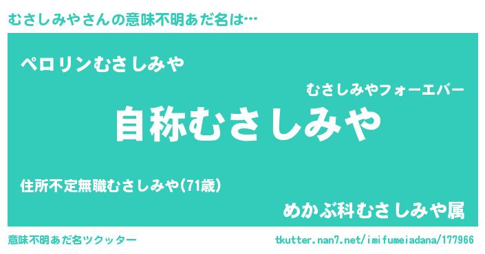 | 女子向けラノベタイトル風あだ名 | 『むさしみやアンティーク』 |
