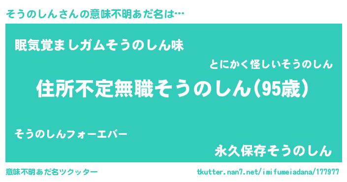 | ヘコむあだ名 | 『そうのしん(遠い目)』『そう太郎』 |