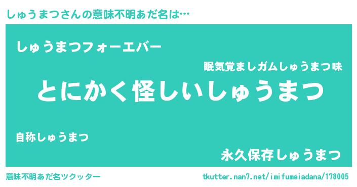 | ポケモン風あだ名 | 『ヒシュウマツ』『シュウダネ』 |