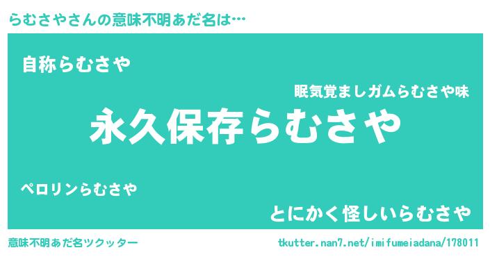 | 胡散臭い通販商品みたいなあだ名 | 『来世でも幸せになれる健康食品…その名も「らむさや」』 |