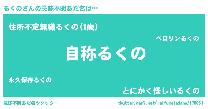 | 男性向けラノベタイトル風あだ名 | 『Re:るくのから始める異世界生活』 |
