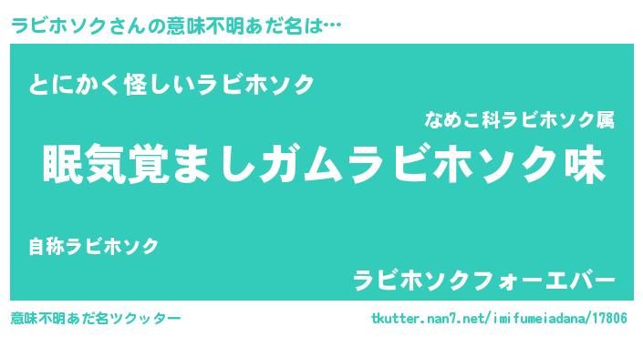 | 男性向けラノベタイトル風あだ名 | 『おまえをオタクにしてやるから、俺をラビホソクにしてくれ! 』 |