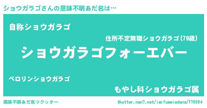 | 欧米人風あだ名 | 『ショウガラゴクリステル』 |