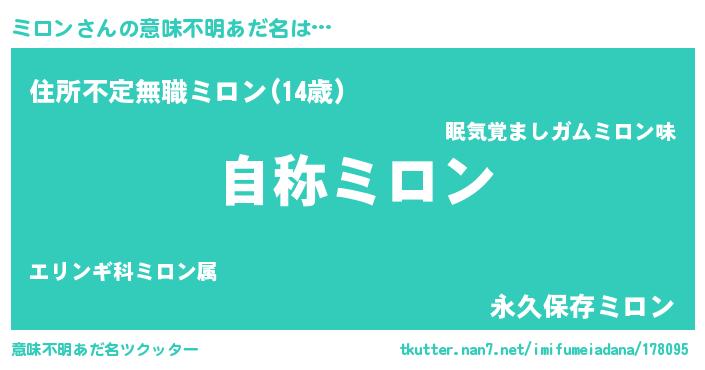 | 男性向けラノベタイトル風あだ名 | 『Re:ミロンから始める異世界生活』 |