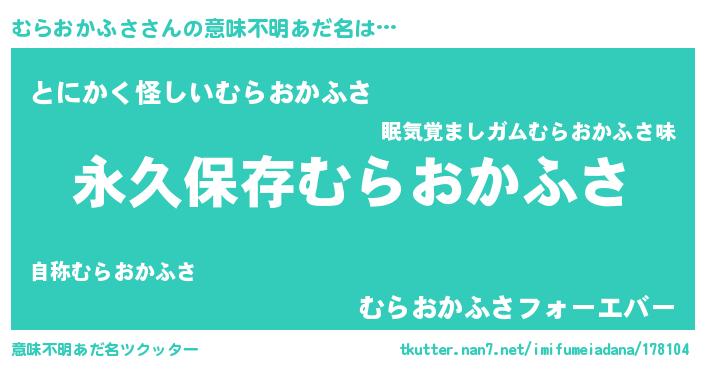 | 男性向けラノベタイトル風あだ名 | 『むらおかふさという概念が存在しない退屈な世界 』 |
