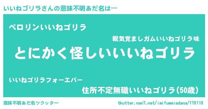 | 男性向けラノベタイトル風あだ名 | 『はたらくいいねゴリラさま!』 |