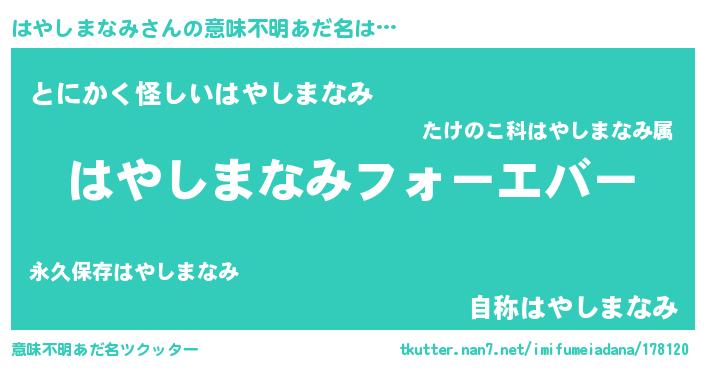 | ファンタジー風あだ名 | 『エターナルハヤシマナミー』 |