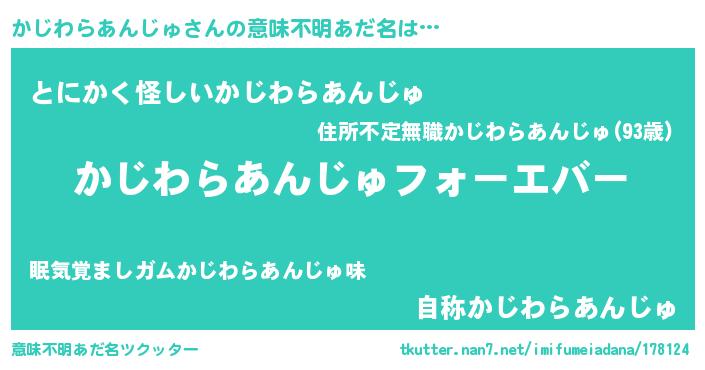 | 男性向けラノベタイトル風あだ名 | 『やはりかじわらあんじゅの青春ラブコメはまちがっている 』 |