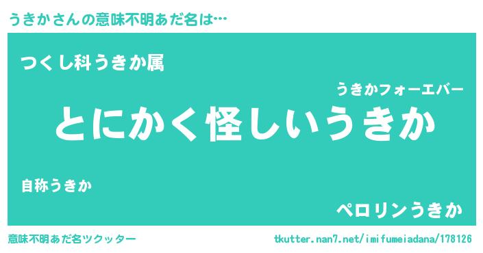 | 恥ずかしいあだ名 | 『ウキリンリン』『プリティーうきか』 |