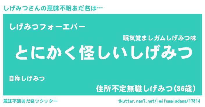 | 男性向けラノベタイトル風あだ名 | 『ダンジョンにしげみつを求めるのは間違っているだろうか』 |