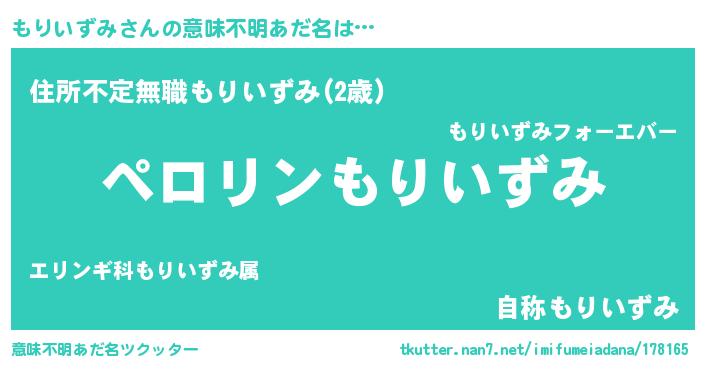 | 男性向けラノベタイトル風あだ名 | 『モリイズミアートオンライン』 |