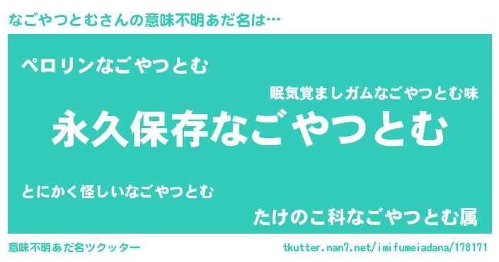 ヘコむあだ名 | 『なごやつとむ(小並感)』『なごふぇ~』 |