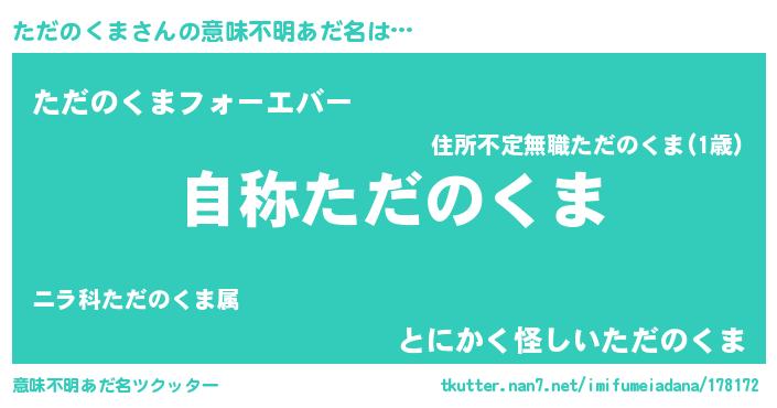 | 女子向けラノベタイトル風あだ名 | 『ただのくまなんてお断りですっ。』 |