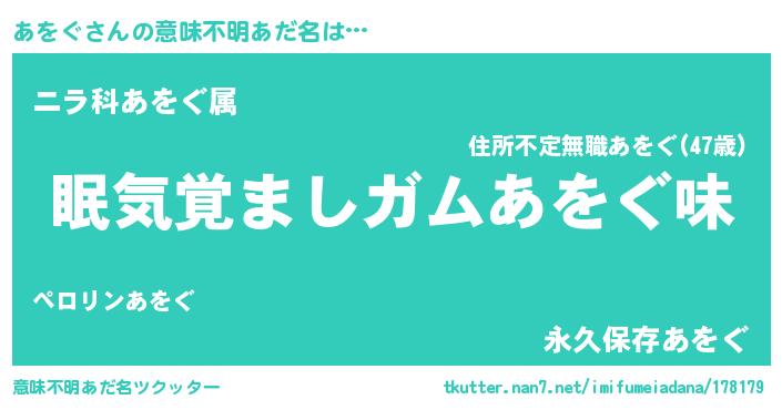 | 欧米人風あだ名 | 『ダニエルあをぐ』『アンジェラ・あをぐ』 |