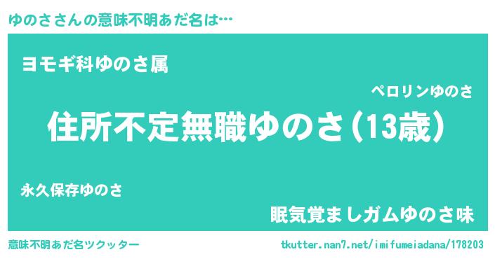 | ヘコむあだ名 | 『ゆのふぇ~』『ゆのさ(苦笑)』 |