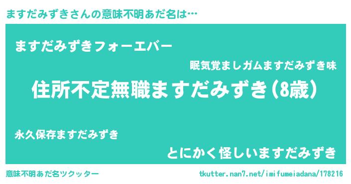| 女子向けラノベタイトル風あだ名 | 『乙女ゲームの破滅フラグしかない悪役ますだみずきに転生してしまった…』 |