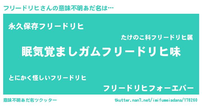 | ヘコむあだ名 | 『フリードリヒ(震え声)』『なまこ酢』 |