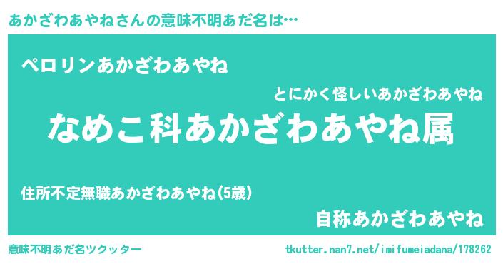 | 胡散臭い通販商品みたいなあだ名 | 『モテモテ間違いなし霊験あらたかなお札…その名も「あかざわあやね」』 |